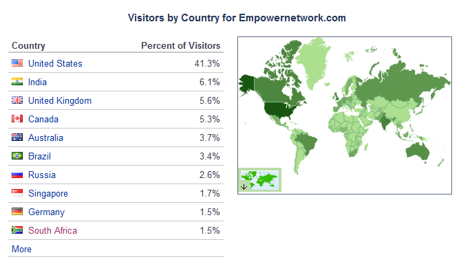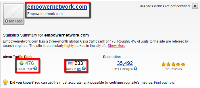 Again why use Empower Network, Empower Network is an authority blogging site, it is currently ranked by Alexa.com at 476th globally and 233rd in the US.