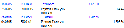 In the example you gave, it will reflect the first May 2015 invoice because it has not been fully paid, and the second May 2015 invoice is reflecting because it was only paid in the month you are running the statement, i.e. June 2015. When you run the July 2015 statement, the second May 2015 invoice will disappear but the first May 2015 invoice will still display even if the remainder of the invoice is paid in July.