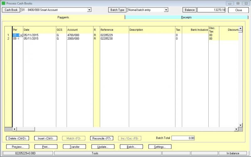 All of a sudden since this morning I have been having a problem with processing in my Cashbook. I captured 4 lines, and then it started giving me a problem. It skips the "Bank inclusive" column...any help or suggestions on why it's doing this?