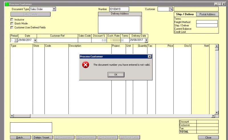 Anyone know why I would be getting this error, the sales order was added using the pervasive PSQL and is a copy of another valid sales order