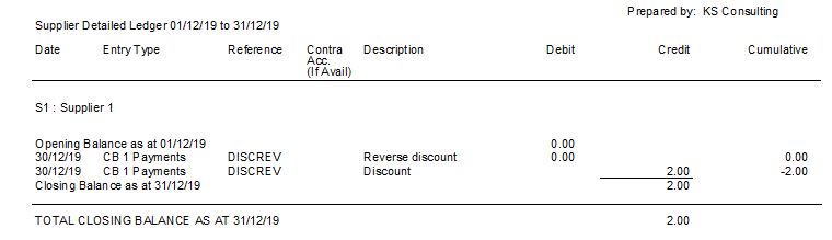 - My supplier's detailed ledger then showed zero. And I was happy.