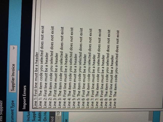 I am trying to import a CSV into Pastel to do an invoice. I've modelled it according to an example that was exported from Pastel so I have the header and details fields. In spite of this, I'm still getting "first line must be a header" error.