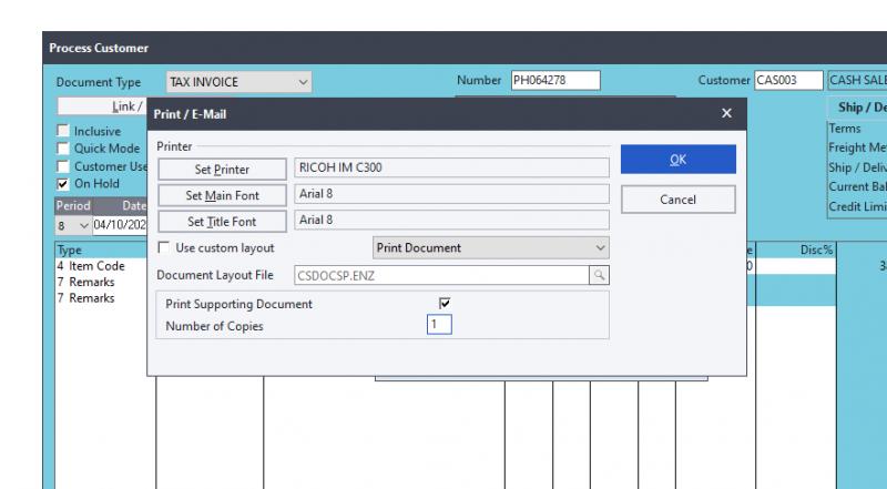 "Print Supporting Document" Only when ticked - and not print tax invoice copy as well (see attached pic)