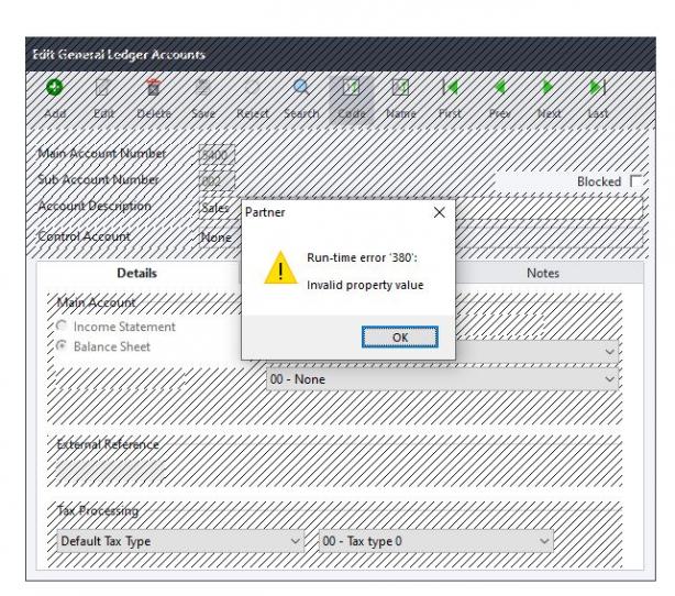PASTEL PARTNER ERROR ON GL ACCOUNT >= 5000 EDIT OR CREATION