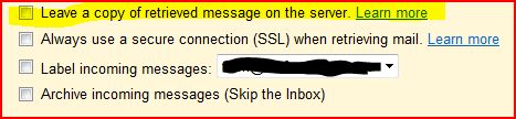 What should I do not to leave emails on the server? I do receive them by means of importing them via gmail and for this reason see no point on leaving them on the server, unless there is a good reason to leave copies there.
