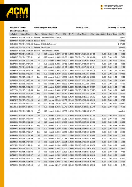 I opened live account with ACMGOLD last year and deposited $ 2600 usd through their bank account and started trading FOREX with their platform and was making profit.