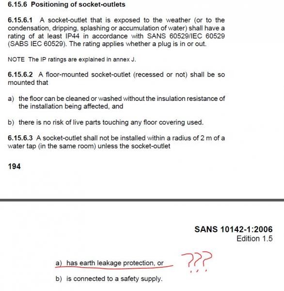 The same can't be said for other parts of sans 10142 but when it comes to socket outlets and water then it is very clear as to what you are allowed or not allowed to do.Comment