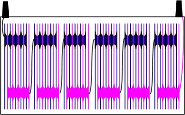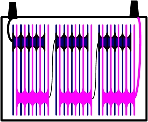 The size of the cell plates required to produce a high current is fairly large and wouldn't fit into a sensible sized battery casing so they cut the large plates into smaller ones and connect then together in groups like this.