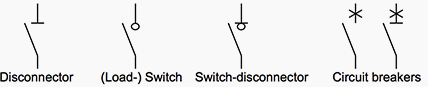 Switch symbols: The horizontal line in the switch symbol of the contacts indicates that they fulfill the isolating function.
