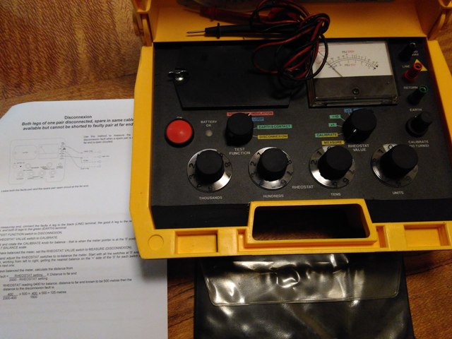 The only cable fault locator I have is an old school balanced loop impedance type and I mean old school...it comes with a rotary slide ruler. It would score pretty low on accuracy compared to some of the newer technology units available nowadays but it scores very high when it comes to price range, I think I paid around R250 for it in the early 1990's.