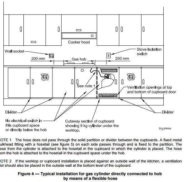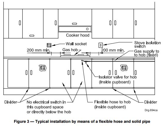 Hi. Where will I find regs pertaining to the positioning of gas stoves relative to socket outlets, isolators etc... The unit has an electric oven so it needs to be plugged in. The gas installer has demanded that the socket outlet in close proximity be blanked off and that the oven be fitted with a stove coupler to utilise the existing stove circuit. The existing stove isolator is however the exact same distance from the nearest flame as the socket outlet he is demanding be blanked off.