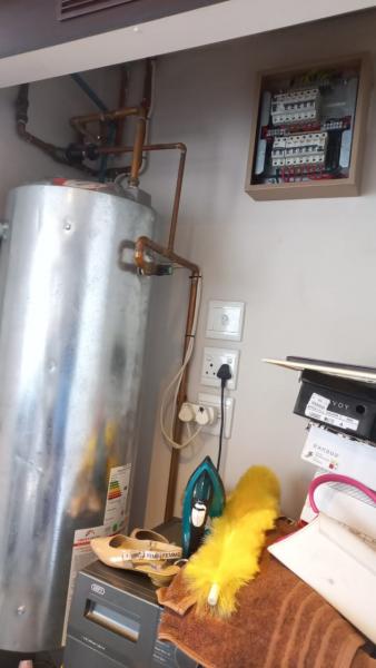 Install a vertical 3mm plastic divider between the geyser pipes and the plugs/DB, to reduce the risk of any sprayed water striking the plugs and DB board. A cheap solution but tons of safety to it.Victor - Knowledge is a blessing or a curse, your current circumstances make you decide!