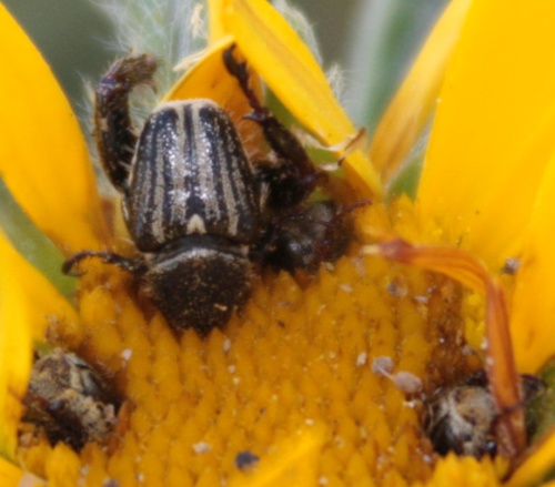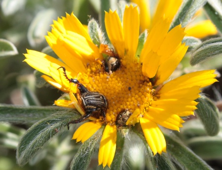 Quick search on the web for a monkey beetle reveals that it is definitely one of those. From everything that I can find, it turns out that these are actually important pollinators of the daisy family. Not too sure why I am being over run by them, but I'll just leave them to get on with their business - maybe it will attract some more birds.