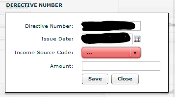 Good day, I am trying to manually add a certificate for a contract worker on Easyfile. She has a tax directive. When I click on the plus next to the Directive Information box, it asks me for the directive number, which I complete, then the Issue date, which I also complete then Income source code with a pull down menu next to it, but when I click on the arrow there is nothing to choose from. When I try and save it like that it gives me this message: "If Directive number is completed, then directive income source code is mandatory" but it does not list anything on the pull down menu. Please help. I inserted a screenshot.