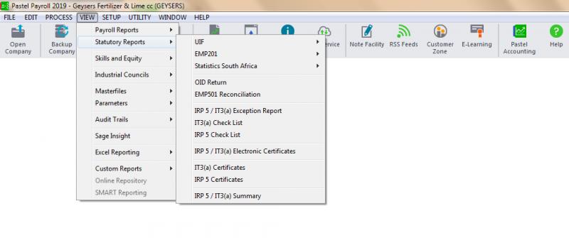 To Print select VIEW/STATUTORY REPORTS/IRP5 CERTIFICATES.