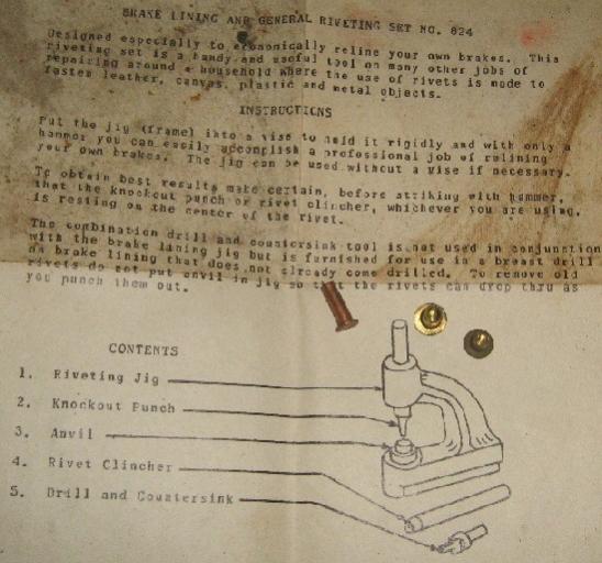 It probably dates from the 1950's in the days when if your brakes were worn you bought a new asbestos pad and riveted it onto the old steel shoes. Farmers with old John Deere tractors might even still use one of these devices and you still get the odd Harley Davidson owners relining brake shoes occasionally.