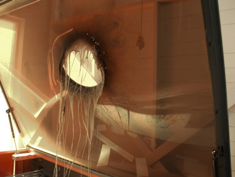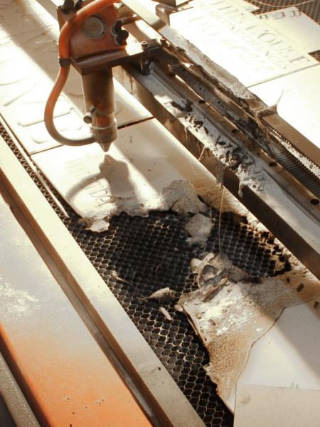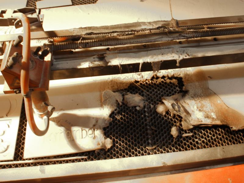 ..and lo and behold...one staff member comes running in, smoke billowing as he opens the door, and tells us that the other laser is on fire....uh...ok...thankfully my Zim guy had the sense to hit the emergency stop and put the fire out with the dry powder fire extinguisher.