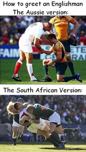 With the Rugby World Cup final looming, I thought it appropriate to pass on this little piece of ettiqette on how to greet an Englishman. Just in case you meet one in the next few days.