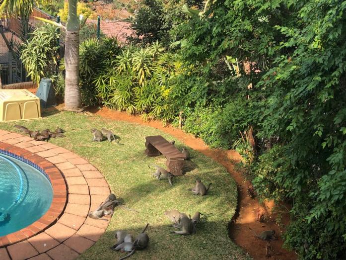 Fortunately, we live in a quiet suburb with amazing bird life and a virtual zoo with vervet monkeys and a troop of mongooses who come and visit daily.