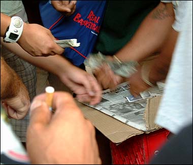 The lure: The "winnings" pile of dollars the hustler displays on the table. "C'mon its easy."