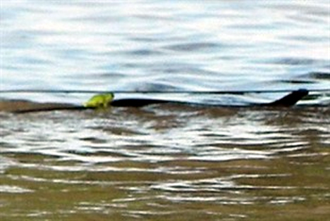 Picture of a snake swimming during the floods in Oz with lunch on its back!!!