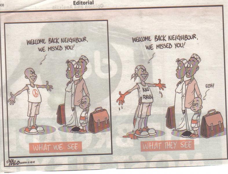 7. The government’s position at the time of these attacks was that non nationals be reintegrated into their communities hence this cartoon