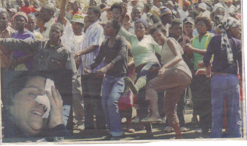 Background: A poor service delivery protest took place in 2007 by some 5000 people from the Protea South Informal Settlement. Why I kept the picture and article. I personally spoke to some people that took place in that protest some 10 days after the fact. Those I spoke to averred that they personally had no thing to do with the protest directly but were unemployed and miserable and it was an opportunity for them to vent and have something constructive to do for that day. Now, If I may direct you to the lady in the front row, second from right with her leg up. Notice her facial expression: Big happy smile, the gentleman behind her, behind the lady with the green top and bluish hat, nice big smile...