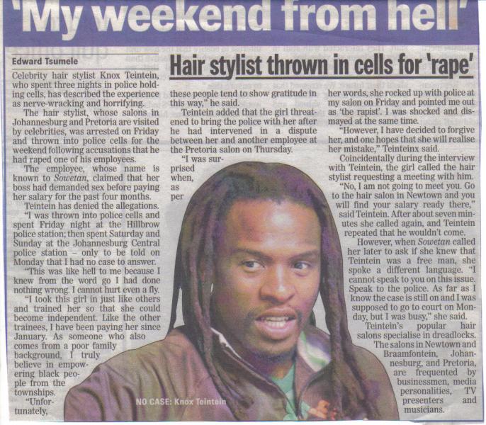 In short this man’s employee claimed that her boss had demanded sex before paying her salary for four months. She files a charge, he’s arrested and spends a weekend in jail, which he dubs ,” My weekend from hell,” Now here’s where it gets interesting: While the reporter of this article is interviewing him, guess who calls him???The girl called the hairstylist requesting a meeting with him.” “ No, I am not going to meet you. Go to the hair salon in Newton and you will find your salary there.” The obvious rationale: The last time she requested her salary, he ended up in jail!