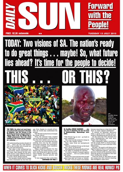 3. It is therefore noteworthy that The Daily Sun ran many articles with the title ‘Alien.’ The one thing I do recall of this period is that in SABC footage of the xenophobia, both non nationals and South Africans were captured carrying the Daily Sun;