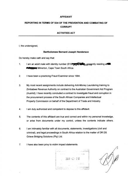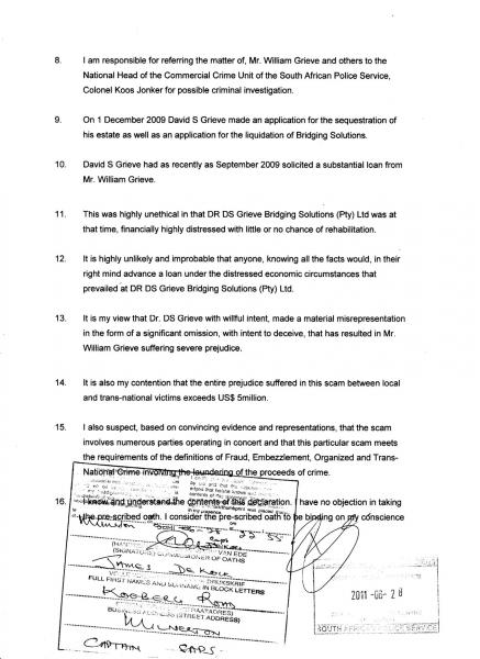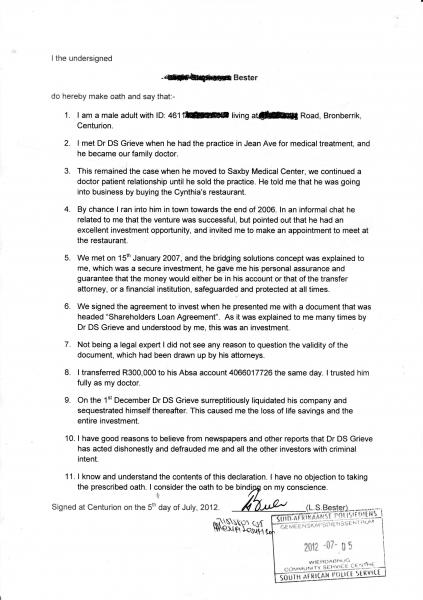 An Expert Opinion on The Dr DS Grieve Fraud of the Elderly, Pensioners and former Patients by Bart Henderson CFE (Certified Fraud Examiner), South Africa's leading Fraud Examiner, Head of the South African Corporate Fraud Management Institute and respected authority, recognised High Court witness in South Africa:-